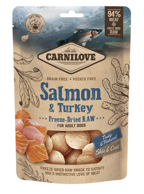 €799€900Prezzo unitario /Non disponibileCarnilove Freeze-Dried Raw Snack Salmone & Tacchino 60 g