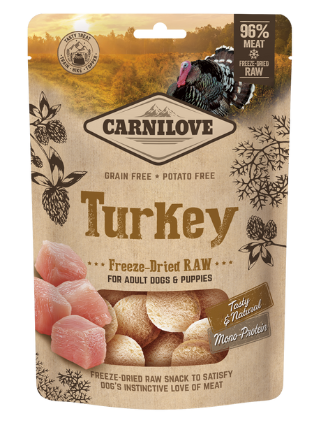 €499€549Prezzo unitario /Non disponibileCarnilove Freeze-Dried Raw Snack Monoproteico Tacchino 60 g